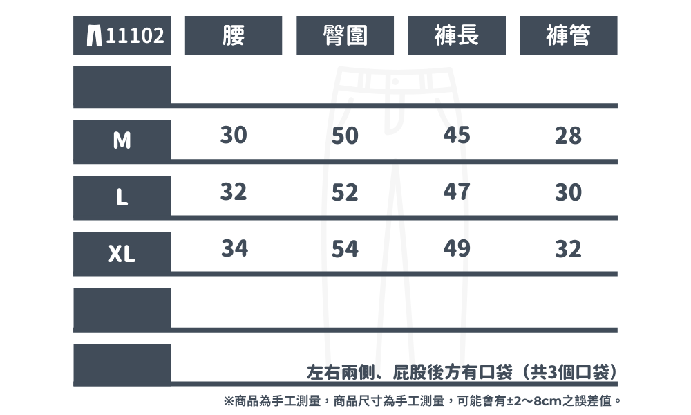 [11102] 左右兩側、屁股後方有口袋(共3個口袋)