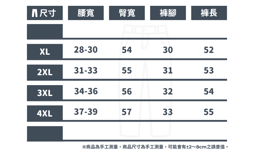 4XL=建議37~39腰