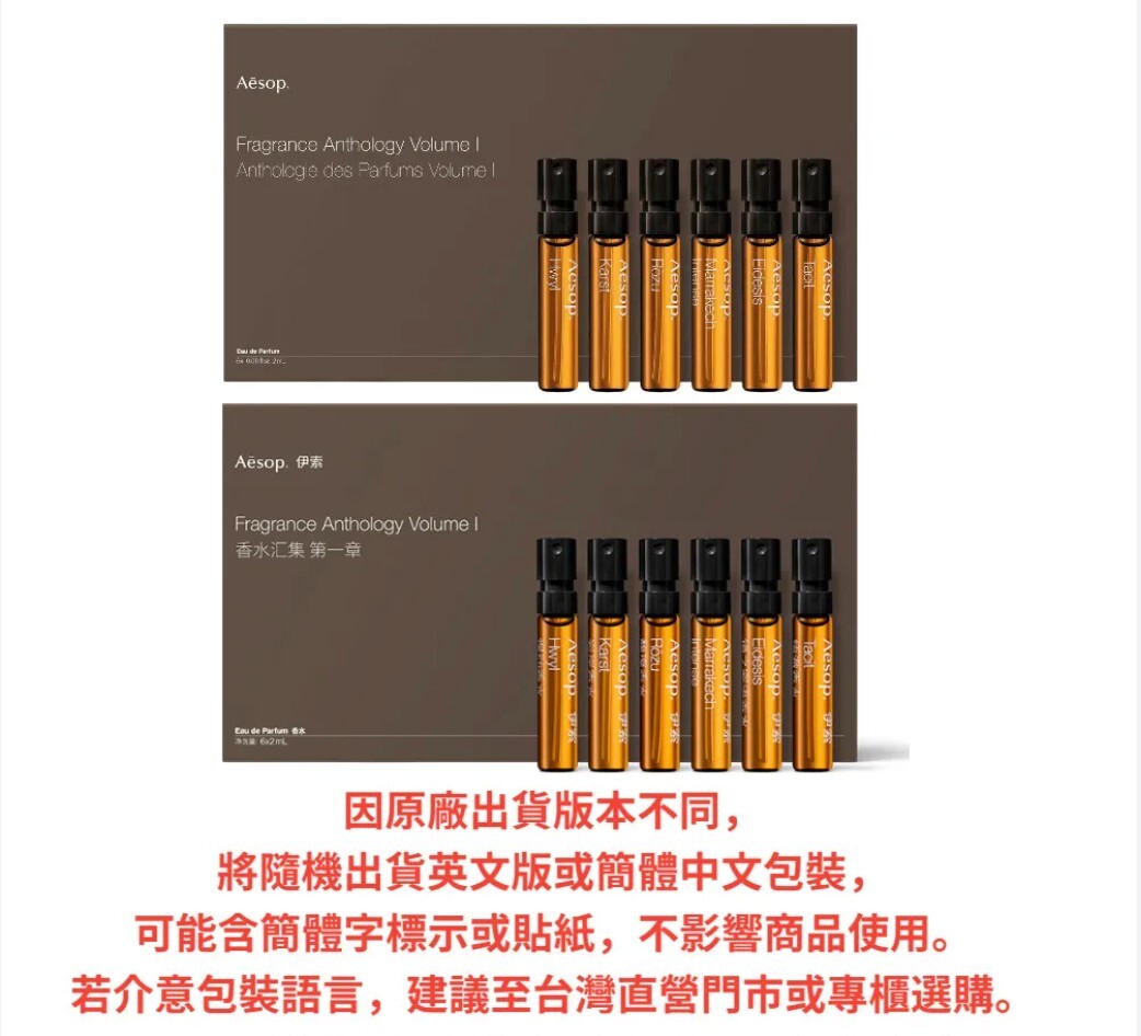 【快速出貨】Aesop 香水匯集 第一章 小香組 (2ML*6入)