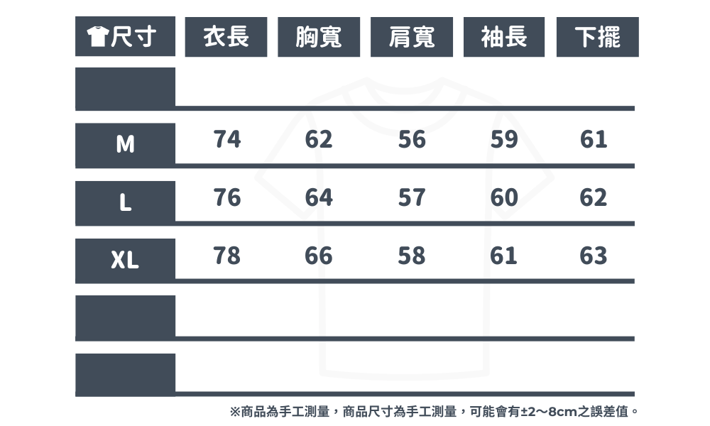 以上建議尺寸皆為寬鬆