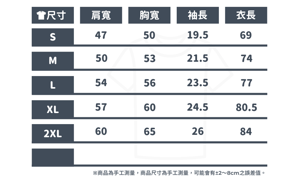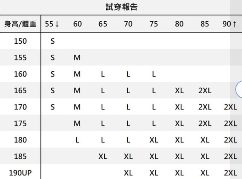 S/M/L/XL/2XL(尺寸表在最後一張圖)
