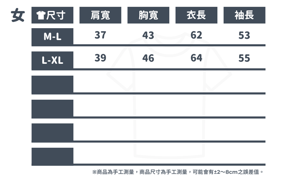 女生2個尺寸 M~L請下標M,L~XL請下標XL